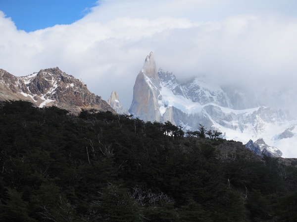Le 23 au matin, nous partons (avec Antoine et Claire) vers El Chalten, la « Mecque » de la randonnée et de l’escalade (sur le légendaire Fitz Roy) mais malheureusement, également la « Mecque » du mauvais temps. Le lendemain (veille de noël), nous parvenons néanmoins, entre deux averses, à faire une belle randonnée pour nous mettre en appétit et ainsi finir dans un restaurant où nous dévorons d’énormes steaks et pizzas. Un peu claqués par notre journée, nous ne parviendrons pas à finir les deux films au programme de notre soirée ! (Nous sommes dans le cycle « Bienvenue à … » : « Bienvenue chez les cht’is », « Bienvenue à Gattaca » et « Bienvenue à Marly Gaumont »).