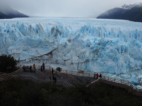La Patagonie est très prisée des auto-stoppeurs : une seule route et des transports en commun plutôt onéreux. C’est pourquoi nous repartons de la frontière argentine avec à notre bord deux polonais et un jeune couple de belges, Antoine et Claire que nous transportons jusqu’à El Calafate. Le lendemain, nous réparons la roue crevée par deux énormes clous l’après-midi précédente et surtout finalisons les dernières courses de Noël dans un petit supermarché (pour compléter ce que nous a ramené la fille de Père Noël – ma cousine Marie-Louise – depuis la France). Le 22, nous passons la journée au glacier Perito Moreno. L’immense glacier qui s’étend devant nous est si captivant que nous l’observons des heures dans l’attente qu’un bout de glace s’effondre dans un bruit de tonnerre. Malgré des grondements et des craquements réguliers, nous ne serons témoins que de quelques éboulis et de la chute de deux morceaux de glace.