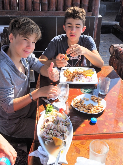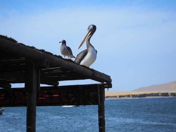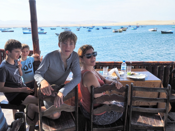 Une nuit dans le Parc de Paracas où nous mangeons enfin des fruits de mer (le celèbre Ceviche, fruits de mer marinés et autre très bons plats) à coté d’énormes pélicans et quelques otaries.