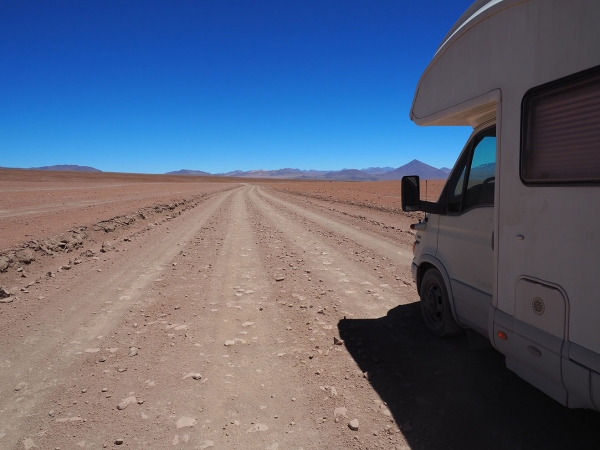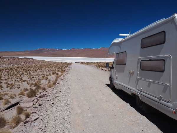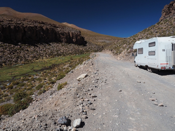 A notre arrivée, nous sentons qu’après ces deux derniers jours un peu stressants, nous allons pouvoir profiter pleinement du paysage dans les jours à venir, nous approchons de la frontière chilienne et même si la piste reste très chaotique (pour notre monture), nous pensons que nous ne risquons plus le scénario catastrophe (la panne technique ou l’enlisement au milieu de nul part à des centaines de kilomètre de la moindre habitation à devoir organiser le dépannage du camping-car …).